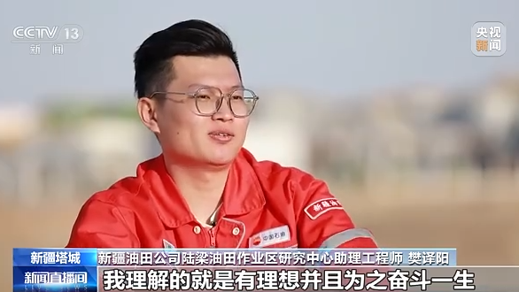 新疆油田公司陆梁油田作业区研究中心助理工程师樊译阳:这油田是2000年建设的,我心想我1998年出生的,比它还大两岁呢,是不是该叫我一声哥呀。可是来了之后发明很多多少先生傅在这一干就是十九年、二十年,驻守这里十年起步的很多多少,他们把青春都贡献到陆梁油田所在的这个沙漠里了。