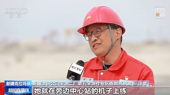 新疆油田公司采油二厂第五采油作业区陈其亮班班长徐雷:每个事情我们干完之后,我们回中心站该用饭的时间我们要去用饭,吃完饭找不到她了。然后一看,她就在旁边中心站的机子上练,能受苦、能战斗,这个就很是钦佩。