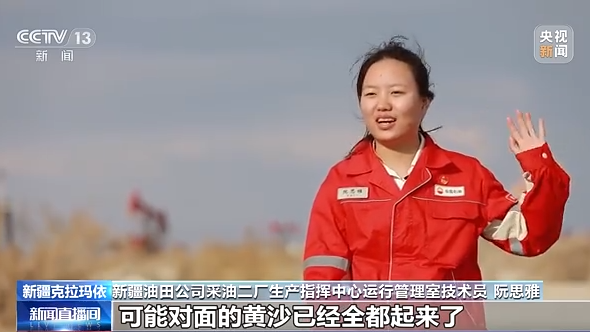 新疆油田公司采油二厂生产指挥中心运行治理室手艺员阮思雅:你听像现在这种风,在克拉玛依可能已经算是较量小的风了,有时间在五六级那种风的时间,可能扑面的黄沙已经全都起来了,已经看不到我们巡检的路了。其时刚来就以为,我来了一个什么地方,习惯以后就以为,我们就是这么个条件,可是已经没有那么难接受了,就以为掏两下不就完事了。