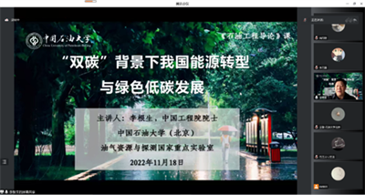 2022ÄêÇ^ѧÆÚ£¬Öп­Ê±ÖذõÍÆ³ö¡°Ê¯Ó͹¤³Ìµ¼ÂÛ¡ª¡ªÃû¼Ò½²Ì³¡±¿Î³Ì£¬Àî¸ùÉúÒÔ¡°Ë«Ì¼Åä¾°ÏÂÎÒ¹úÄÜԴתÐÍÓëÂÌÉ«µÍ̼Éú³¤¡±ÎªÖ÷ÌâΪʯÓ͹¤³ÌѧԺ´óÒ»ÐÂÉúÔÆ¶ËÊڿΣ¬ÃãÀøÑ§Éú×ÅÑÛ¹ú¼ÒÄÜÔ´Çå¾²Õ½ÂÔ£¬¼ç¸ºÆðÄÜÔ´±¨¹ú¡¢ÄÜÔ´Ç¿¹úµÄʹÃü¡£