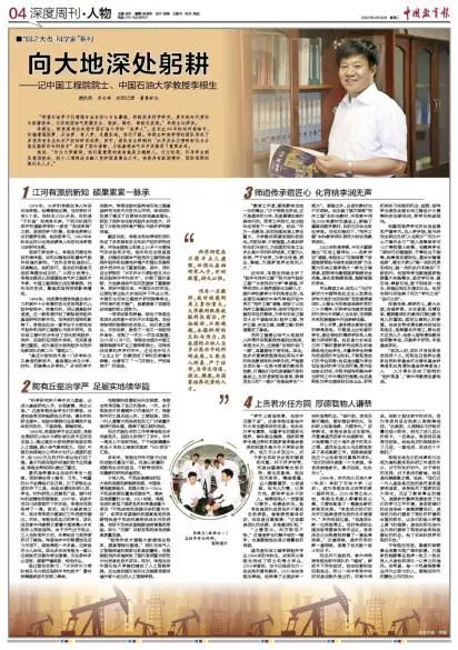 ¿ËÈÕ£¬Öйú½ÌÓý±¨¡¶Éî¶ÈÖÜ¿¯¡¤ÈËÎï¡·°æÃæÒÔ¡°Ïò´óµØÉî´¦¹ª¸û¡±ÎªÌ⣬Õû°æ±¨µÀÁËÖйú¹¤³ÌԺԺʿÖп­Ê±Àî¸ùÉú½ÌÊÚµÄʼ£¡£