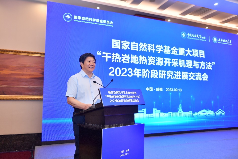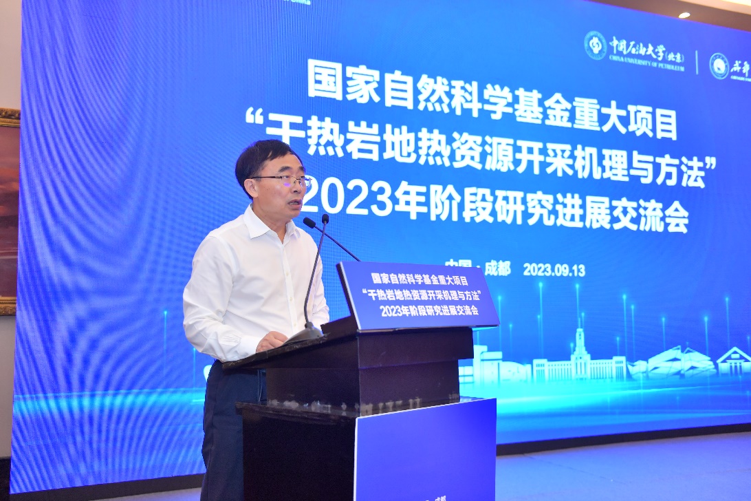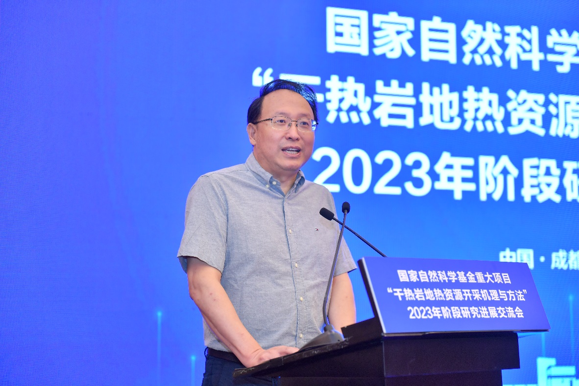 会上,成都理工大学校长刘清友向出席聚会的列位院士、专家和向导体现真挚的接待,他先容了成都理工大学在地热勘探开发方面取得的成绩,对与会专家向导给予项目与学校的支持体贴体现谢谢,期望列位专家向导能够在本次阶段交流会上,不吝见教、分享智慧,同谋干热岩地热资源开采使用的生长时势。