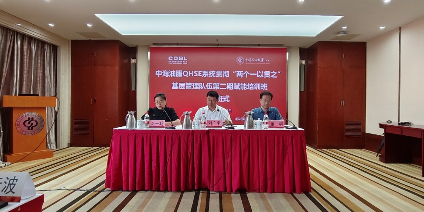 2024年8月5日,由我校承办的中海油服QHSE系统贯彻“两个一以贯之”下层治理步队第二期赋能培训班在翠宫第五聚会室举行开班式。凯时(北京)网络与继续教育学院副院长刘一凝、中海油田效劳股份有限公司质量清静部岗位司理刘广宇出席开班式并讲话。