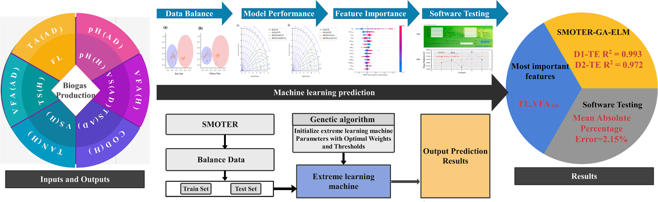针对工业沼气厂参数的高度非线性和不平衡问题,我们提出了一种混淆极端学习机模子(SMOTER-GA-ELM),通过将机械学习手艺与数据平衡手艺和优化算法相连系,可解决不平衡数据来实现了对差别负荷下工厂沼气产量的准确展望。相关效果开发成软件助力湿式厌氧工厂高效产沼气 (软著号:2022SR0903828),并以“Plant-scale biogas production prediction based on multiple hybrid machine learning technique”为题,于2022年9月在国际着名学术期刊Bioresource Technology上揭晓。论文链接:https://doi.org/10.1016/j.biortech.2022.127899.