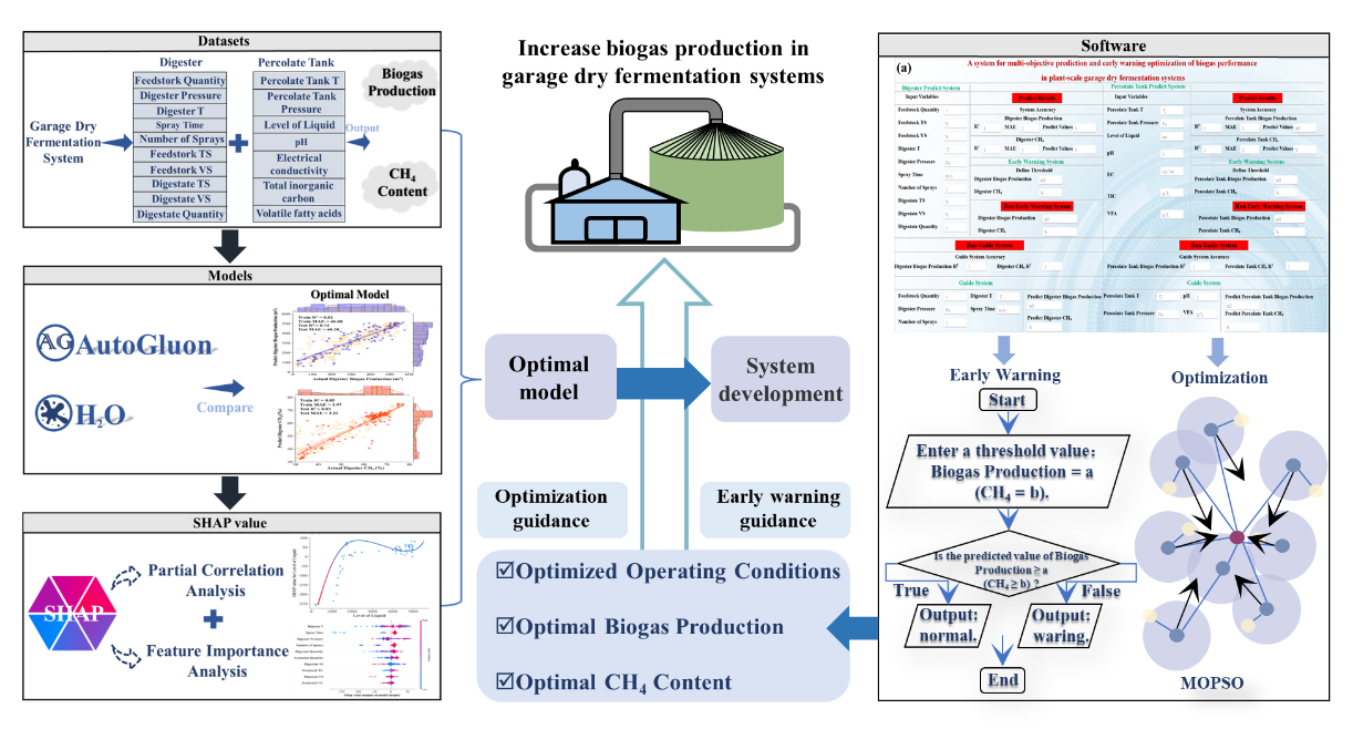针对工业规模车库干发酵系统具有极强非线性的问题,我们提出了一种新型机械学习智能系统,它接纳两种自念头械学习算法(AutoGluon和H2O)举行沼气性能展望,并接纳SHAP举行可诠释性剖析,同时接纳多目的粒子群优化对工业规模车库干发酵举行预警指导,为下一代智能工业系统铺平了蹊径(软著号:2023SR0452517)。相关效果以“Novel intelligent system based on automated machine learning for multi objective prediction and early warning guidance of biogas performance in industrial-scale garage dry fermentation”为题,于2023年5月在国际着名学术期刊ACS ES&T Engineering上揭晓。论文链接:https://doi.org/10.1021/acsestengg.3c00079.