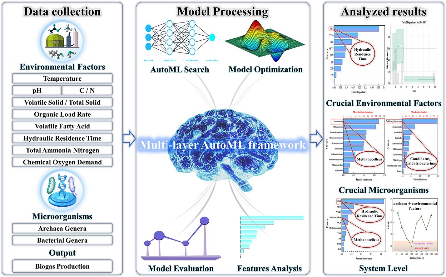 基于先前基础,我们研究了多层面要害因素对重大厌氧消化系统的影响。提出了一个多层自念头械学习框架,通过在多条理举行性能展望以相识厌氧消化系统中重大的相互作用,并探索了情形因素、微生物和系统层面的要害因素,有望为明确各规模(工业和实验室)厌氧消化系统的重大结构提供指导。相关效果以“Using automated machine learning techniques to explore key factors in anaerobic digestion: At the environmental factor, microorganisms and system levels”为题,于2023年9月在国际着名学术期刊Chemical Engineering Journal上揭晓。论文链接:https://doi.org/10.1016/j.cej.2023.146069.