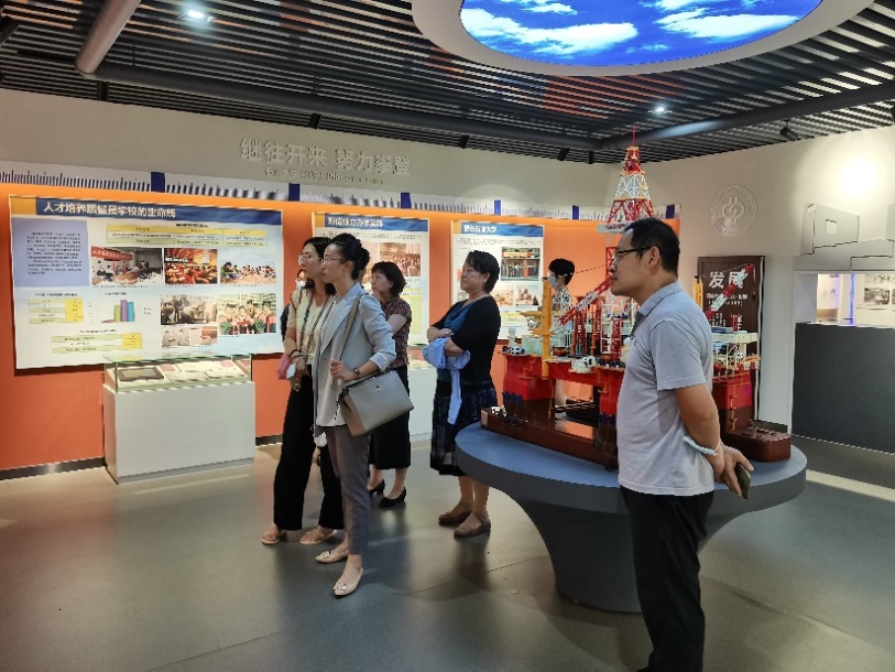 7月22日上午,国家图书馆知识产权信息效劳中心认真人及相关事情职员一行7人,在中凯时图书馆石油情报中心主任张芹的陪同下旅行了校史馆 。