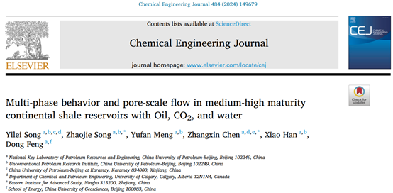Multi-phase behavior and pore-scale flow in medium-high maturity continental shale reservoirs with oil, CO2, and water(中高熟陆相页岩油藏油-CO2-水系统多相相态和孔隙标准流动纪律)揭晓在《Chemical Engineering Journal》(https://doi.org/10.1016/j.cej.2024.149679)。该论文使用室内实验、状态方程盘算和孔隙网络模拟等要领,探讨了页岩油-CO2-水系统在体相条件和纳米孔隙内的相态特征以及在纳微米孔喉系统内的流动纪律。效果批注,纳米限域效应增进了气相分子向液相的转移,提高了油相和水相中的CO2消融度;CO2注入后改变了油水流动路径,有用提高了小孔隙内原油采出水平。该期刊是能源、化工领域的国际著名期刊,影响因子为15.1,中科院一区Top。我院博士生宋宜磊为第一作者,宋兆杰教授和陈掌星院士为配合通讯作者。