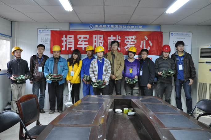 111下昼,在学生涯动中心项目部聚会室,举行了由地学院启明星社团提倡的向农民工“捐制服献爱心”活动的捐赠仪式,启明星社团代表、基建处、工程施工单位、监理单位向导及农民工代表出席了仪式。