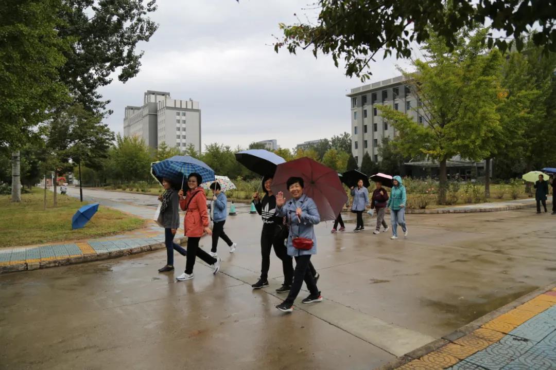霞披斜阳情无限,霜染秋枫叶正红。微风细雨送秋爽,瓜果梨桃正香甜。10月14日上午,中凯时离退休事情处在昌平东校园举行了以“庆建党百年,迎重阳佳节”为主题的健步走活动,一百多名离退休教职工在蒙蒙细雨中加入了本次活动。