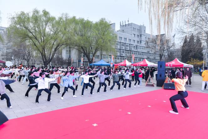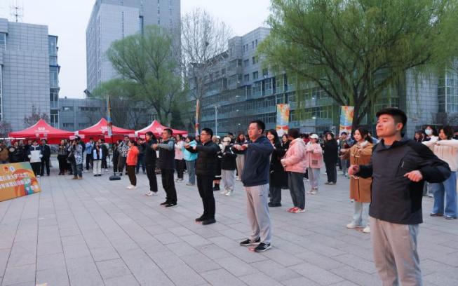 为了增添活动加入度 ,此次大赛还增添了养生八段锦体验和广场舞环节。现场师生配合学习养生八段锦 ,随着动感的音乐欢快舞蹈。