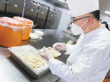 厨房的面点师傅们全心研制了多种口胃的元宵和汤圆,加班加点赶制出200余斤。光是炸汤圆就有三种口胃——原味、番茄味、沙拉味。不少运发动品尝了元宵和汤圆,增添了对中国古板文化的进一步熟悉。