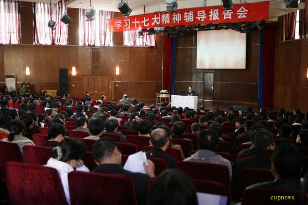为学习好、宣传好、贯彻好党的十七大精神,把全校宽大党员干部群众的头脑和行动统一到十七大精神上来,11月8日下昼,我校在科学礼堂举行了学习党的十七大精神向导报告会,约请北京市委宣讲团成员、中央党校教授牛先锋作了题为“奋力开拓中国特色社会主义更为辽阔的生长远景”的报告。