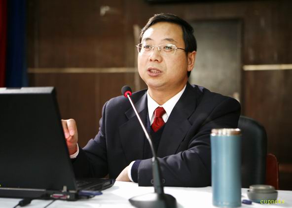 报告会由党委宣传部部长梁喜书主持。党委书记蒋庆哲、校长张来斌、校务委员会主任张一伟、副校长徐春明等校向导出席了报告会,全校全体教工党员和学生党支部书记聆听了报告。