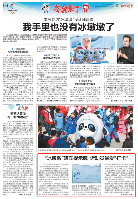 北京晚报等:“冰墩墩”班车提醒牌 运发动最爱“打卡”