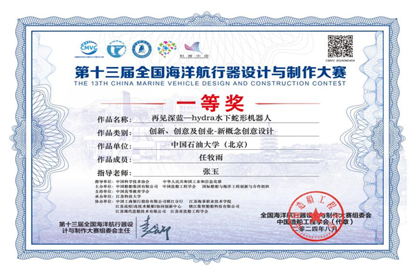 克日,第十三届天下海洋航行器设计与制作大赛暨首届船舶与海洋工程类西席教学立异大赛在江苏科技大学召开。中凯时清静与海洋工程学院学生任牧雨的参赛作品“再见深蓝—hydra水下蛇形机械人”荣获天下一等奖,这也是学校首次在该角逐中获奖。