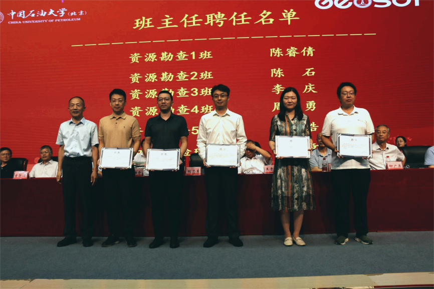 鲍志东为2024级本科生新生班主任揭晓聘书,王贵文为2024级本科生学业导师揭晓聘书。