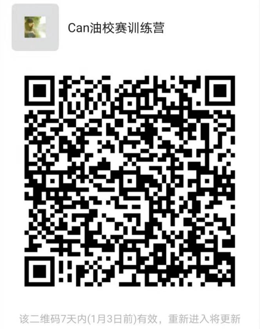 学校将重点关注效果排名前三十的项目小组,效果排名前六十的项目小组进入Can油校赛训练营,请效果排名前六十的项目认真人扫码进群(见图1)并更改备注为“效果排名+姓名”以便后续交流。请加入训练营的步队认真看待,后续将凭证步队的现实能力及态度逐步筛选择优。
