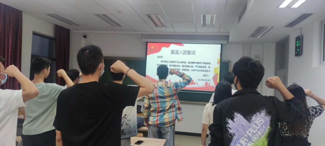 最后,全体团员高举右手,紧握右拳,在团支部书记胡梓轩的领誓下,郑重地重温入团誓词:我自愿加入中国共产主义青年团........,铮铮誓词在活动室里回荡,团员们心情庄重肃穆,誓词铿锵有力,在这庄重神圣的气氛中,青年团员们接受了一次头脑的洗礼和心灵的震撼,指导着他们在接下来的学习、事情中不忘誓言,幸不辱命,永葆先进。
